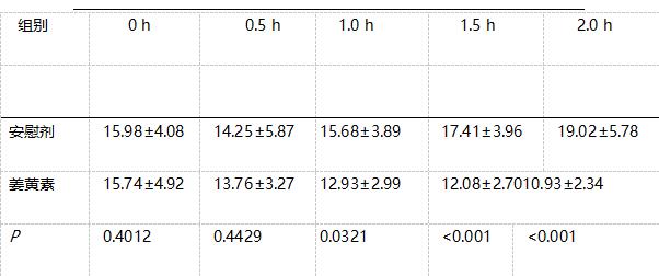 表1 服用20 mg姜黃素和安慰劑后膽囊容積/mL