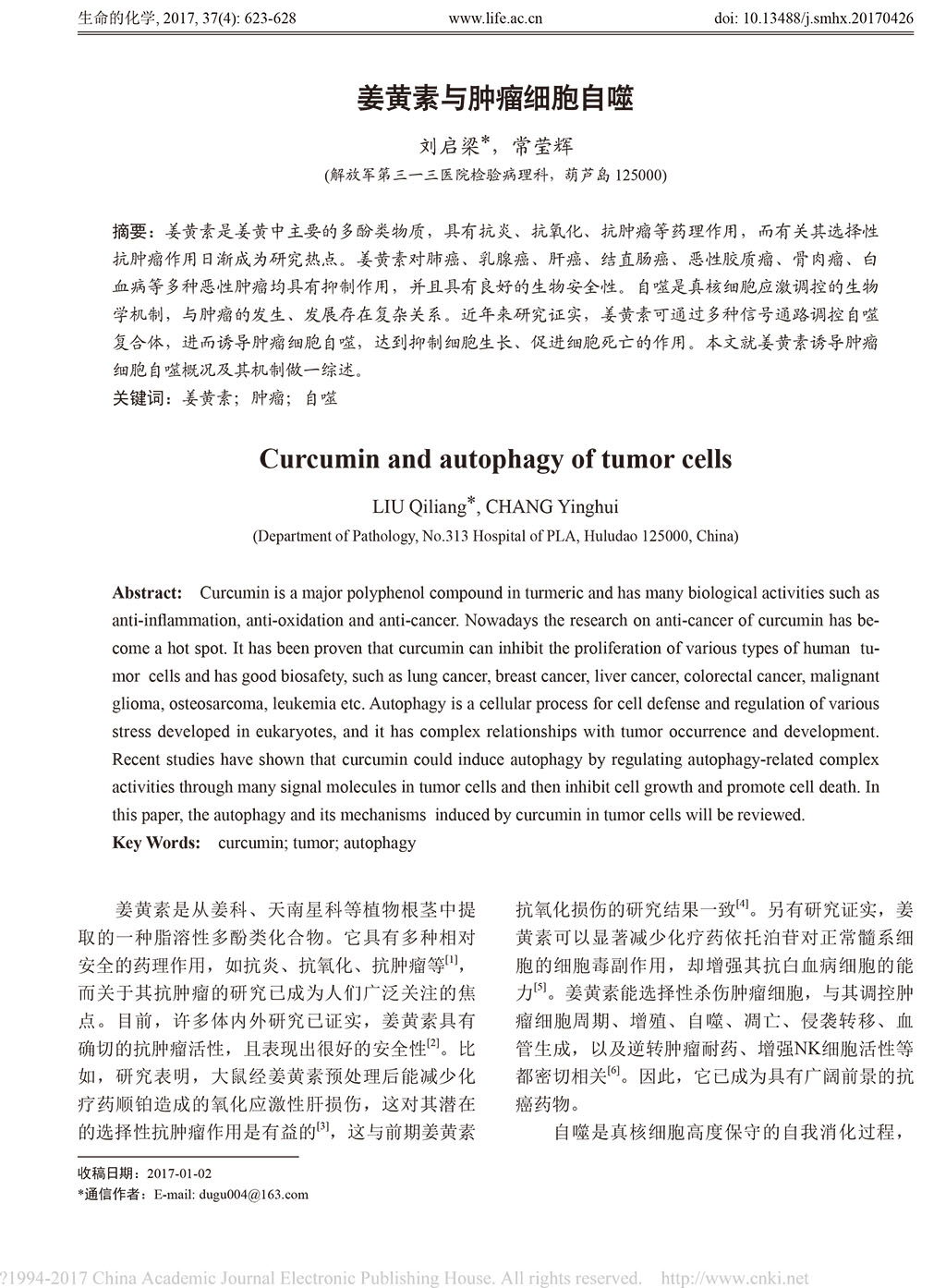 姜黃素與腫瘤細(xì)胞自噬_劉啟梁